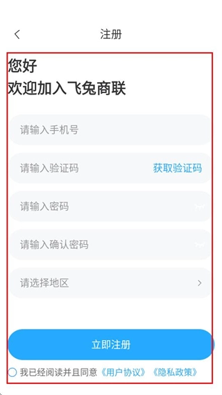 4、在注册页面,填写信息,勾选协议后点击立即注册完成账号注册。