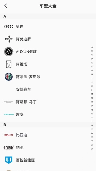 2、进入到车型大全的界面,有不同品牌的汽车提供,直接点击去查看的。