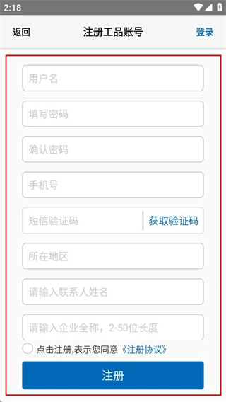 4、在注册页面,填写信息,勾选协议后点击注册完成账号注册。