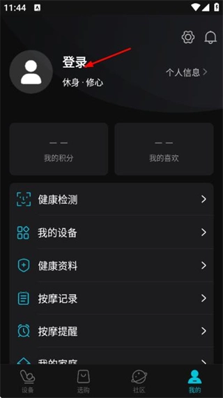 2、在个人中心页面点击登录,进入登录页面。