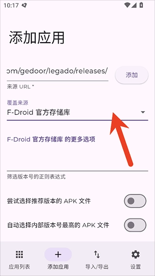 1. 打开Obtainium 的添加应用界面,输入应用的来源网址即可进行添加操作。