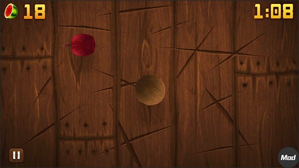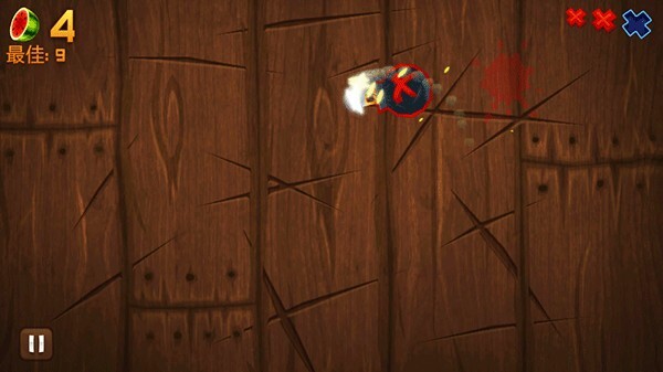 游戏过程中,水果与炸弹会持续出现,时间没有限制。对于水果,玩家有三次未切到的失误机会;但只要切到炸弹,游戏即刻结束。每当玩家积累到100分,就能自动恢复一次之前失去的失误机会。