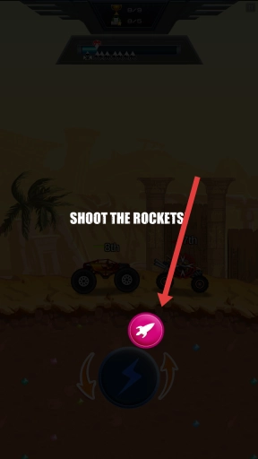 3、当界面提示SHOOT THE ROCKETS时,点击粉色火箭按钮,向对手发射火箭,干扰它行驶。