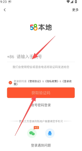 2、以手机号码短信验证码的方式进入。