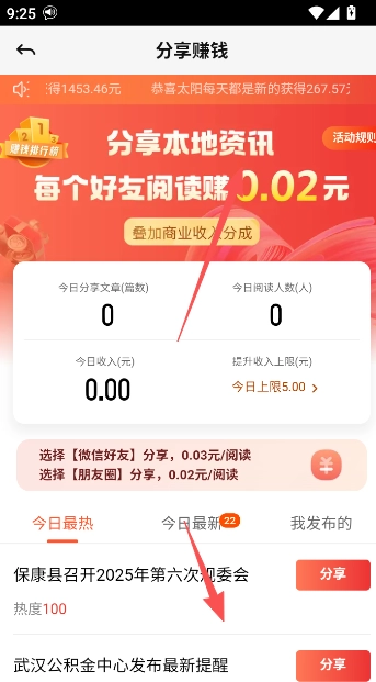 3、参与必做任务的看视频赚金币和分享文章的方式赚取收益。