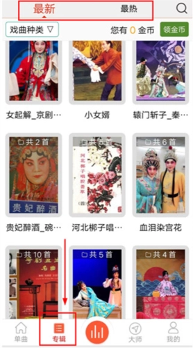 2、点击专辑,查看专辑的内容,选择专辑播放专辑内的戏曲。