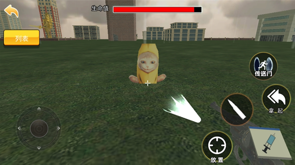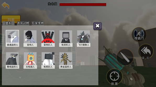 2、玩家可以利用里面提供的各种物品以及人物角色来放置,然后使用枪支瞄准射击消灭掉对方。