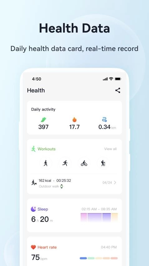 G Band是一款专注于专业智能手表设备操控管理的应用软件。用户通过它能便捷地添加智能手表设备,轻松实现手表数据与手机的同步管理。软件提供全面的智能手表工具服务,支持睡眠记录、心脏健康监测、运动记录、步数统计等多种功能。此外,在G Band最新版本中,用户可自定义切换各类表盘主题,众多热门主题表盘均可免费设置和使用。该应用由深圳市维亿魄科技有限公司专为用户研发打造,对这款软件感兴趣的朋友不妨来本站体验一番!