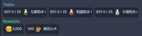 除了药水任务,其他任务都比较直白,基本干完就行。而药水任务一旦解锁就无法回撤,新手在接受草药学药水任务时,只有依赖草药学得到的一级药水,四级则相对麻烦,需要刷等级。