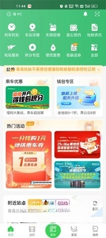 2、固定优惠包括地铁9-7折、公交8折,以及一小时内换乘减1元的福利。此外还有诸如周出行礼包和半价乘地铁的活动,将出行成本降到最低,更有往返胶东机场0元直达的超值享受。