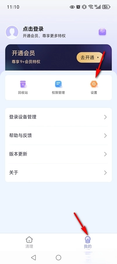 点击【我的】,再点击【设置】