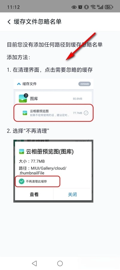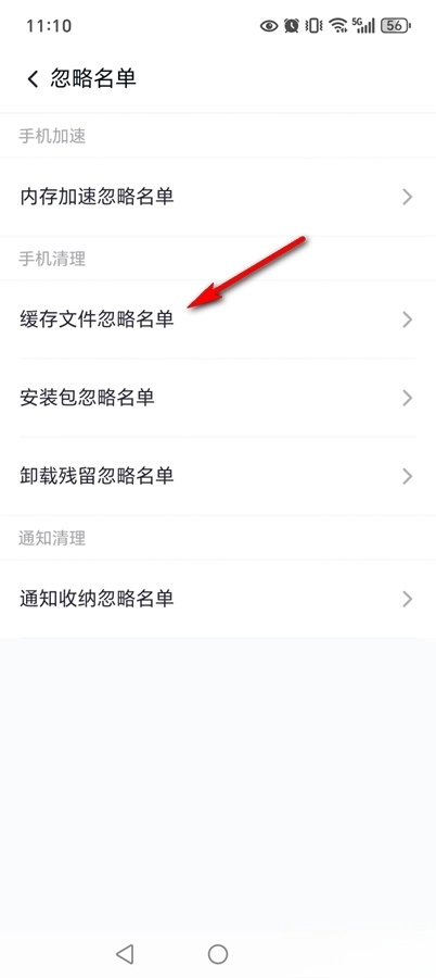 点击【缓存文件忽略名单】