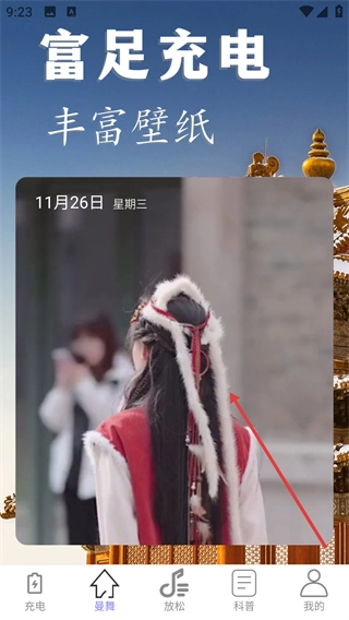 2、进入【曼舞】模块后,可浏览【丰富壁纸】内容,选择目标壁纸进入详情操作界面。