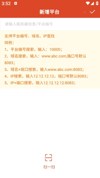 2、同意协议后将自动跳转至登录界面,支持扫码识别服务器与平台信息。