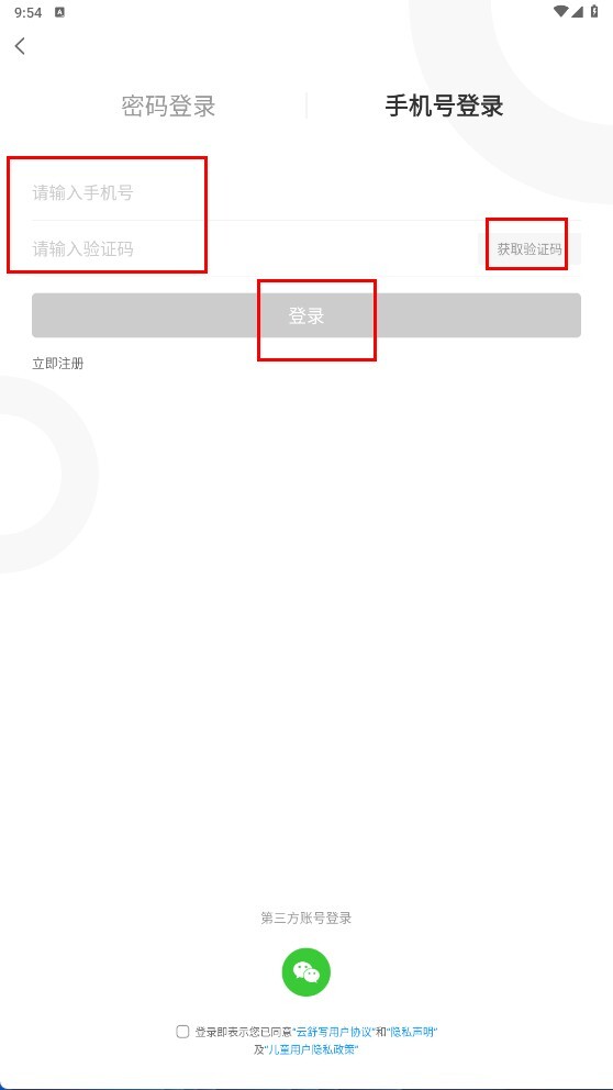 4.选择【手机号登录】方式时,输入手机号,点击【获取验证码】,填写收到的验证码后,点击【登录】完成操作。