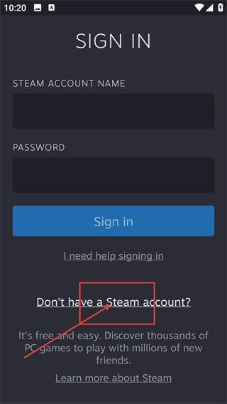 1、在【登录】界面,若没有【Steam账号】,可点击对应提示进入注册流程。