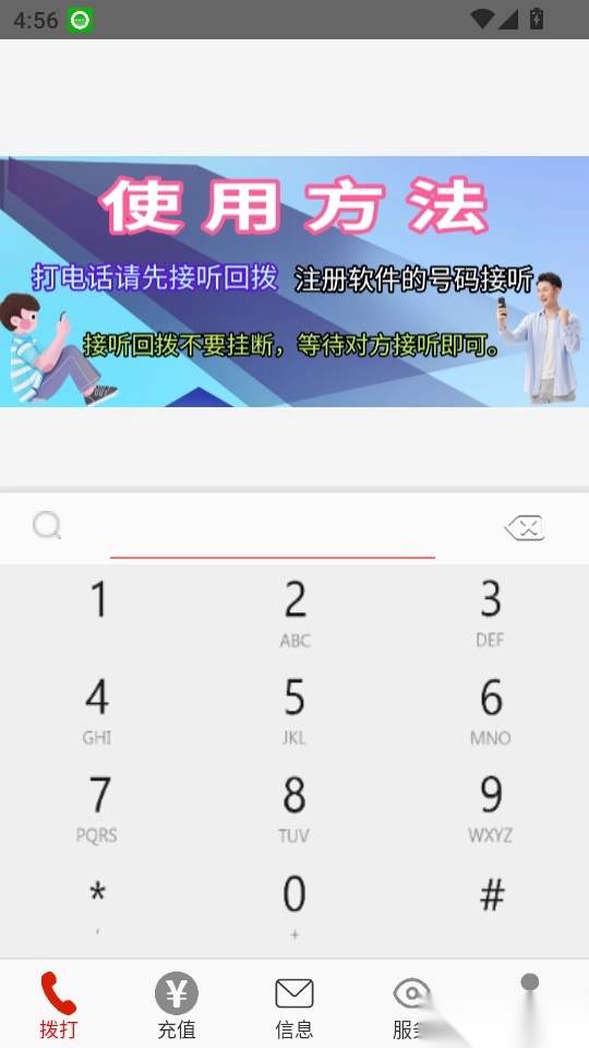 一键通话,对方免安装,无月租,无流量消耗,仅接通瞬间几Kb流量,支持3大运营商任意号段手机座机。