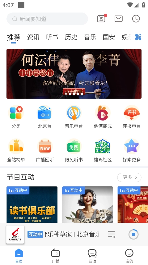 听听FM作为一款综合性音频平台,整合了北京广播以及全国一百多家电台的优质资源,覆盖新闻、戏曲等多个领域。用户不仅能实时收听直播电台、参与主播的互动直播,还可以借助智能推荐功能发现符合个人喜好的内容,并且能够自由剪辑和分享音频片段,从而获得沉浸式的高品质音频体验。