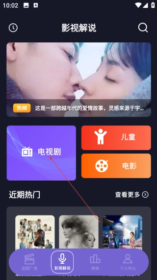 2、在影视解说页,点击【电视剧】分类,进入电视剧的推荐与选择页面。