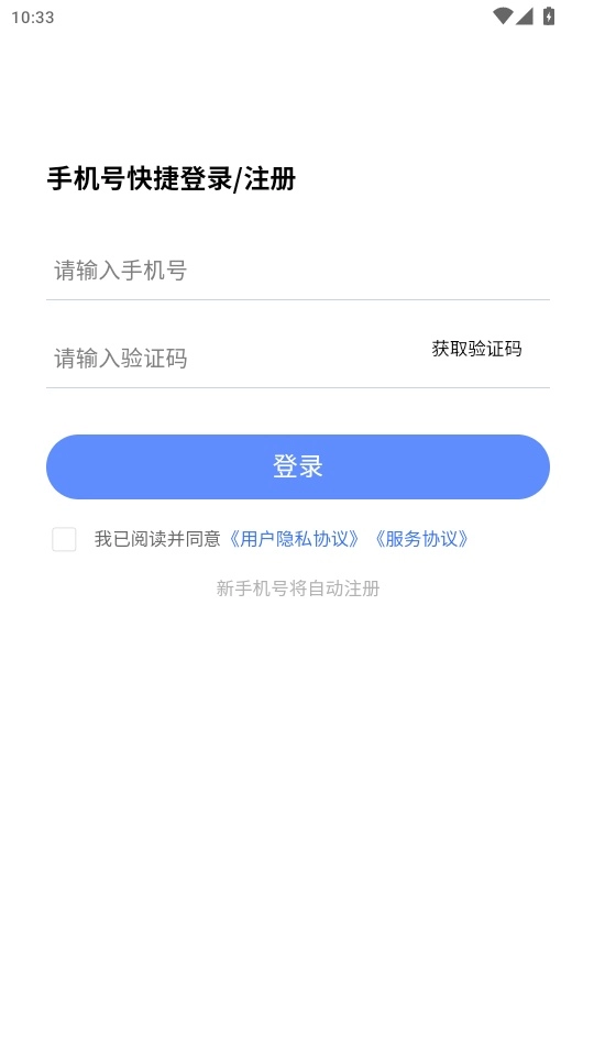 2.输入手机号、验证码点击“登录”即可立即登录使用