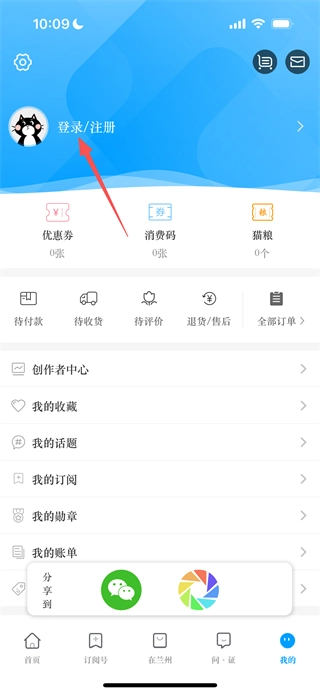 2、在个人中心页面,点击登录注册选项,进入登录页面。