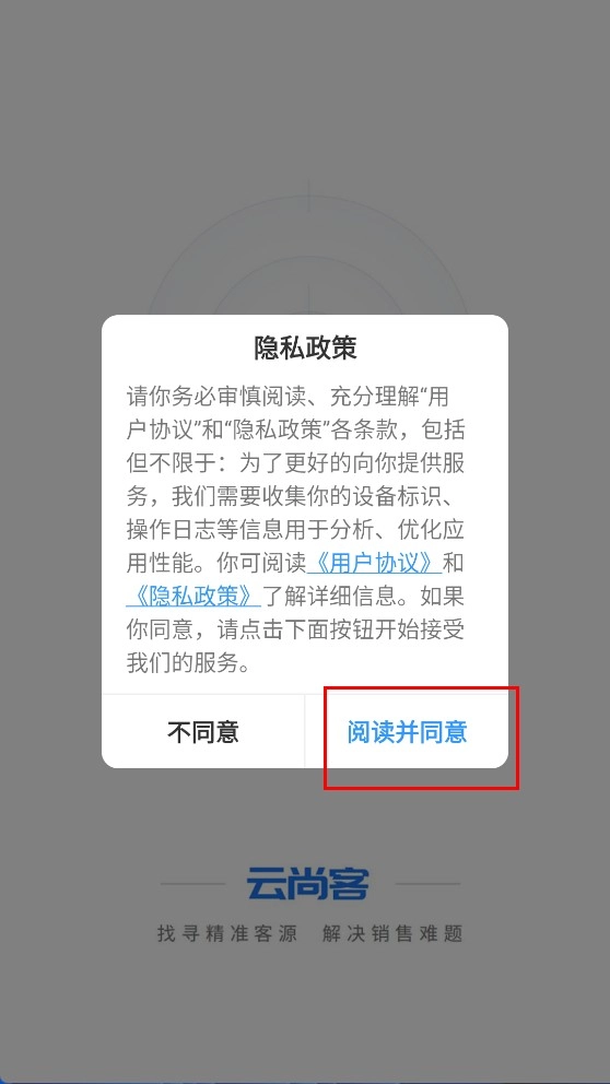 1、在隐私政策弹窗中,点击【阅读并同意】按钮,以确认接受相关条款。