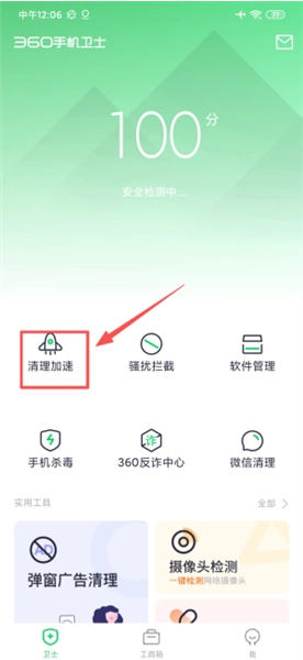 2、通过选择不同的功能,可对手机进行加速,骚扰拦截、深度清理、快速杀毒等操作