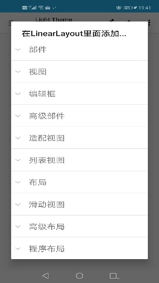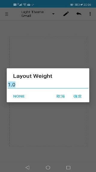 8. 点击上方的线性布局,找到“Layout Weight”一项,设置为1.0,该属性较为复杂,在此不做详细说明。