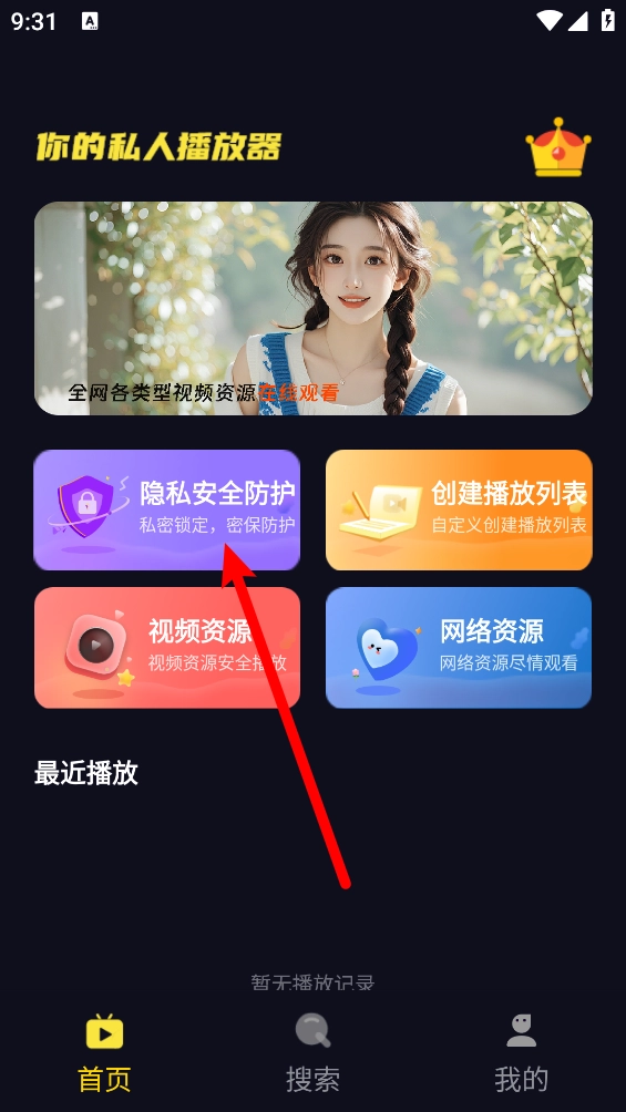 2、在首页点击"隐私安全防护"按钮。