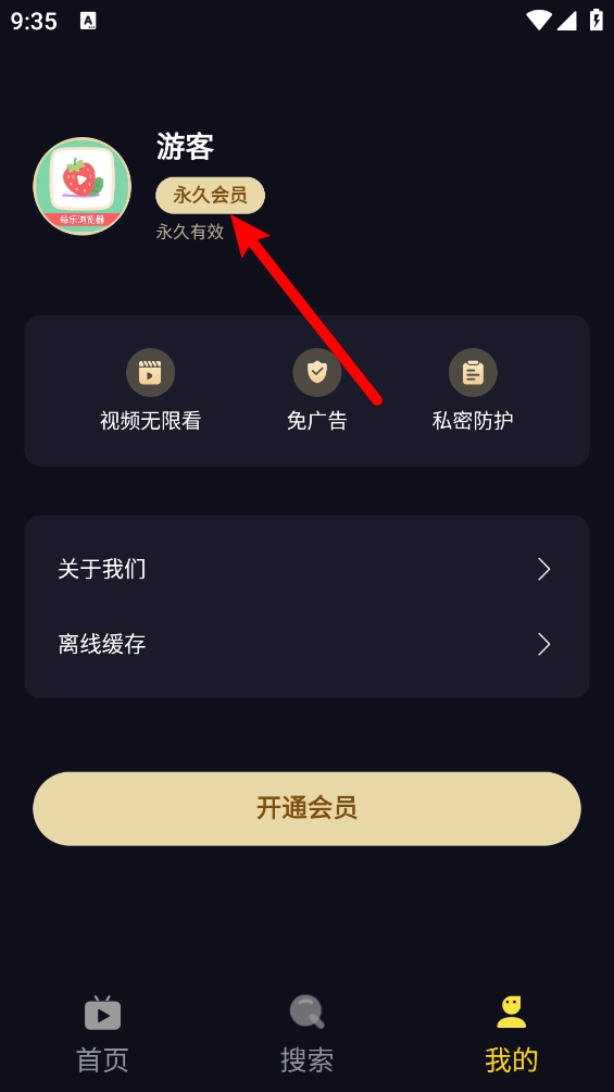 2、然后在我的页面点击"永久会员"按钮。