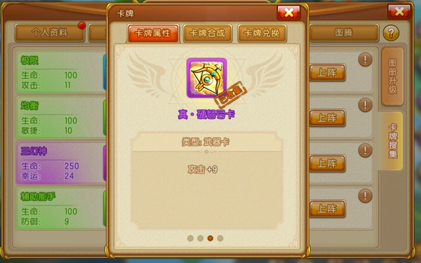 游戏内消耗卡魂(卡魂可以自秘境商店中兑换,或邀请新人加入弹弹世界获得的礼包内也有卡魂)和一定数量的金币进行图册升级,可以获得属性点,弹友们可以按照自身需要将属性点投入到自身所需的属性上,再次进行一波提升。
