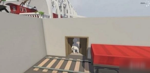 Bob从天而降落到火车关卡,按下抓取键移动Bob将黄色的垃圾箱移开,进入后方的门。