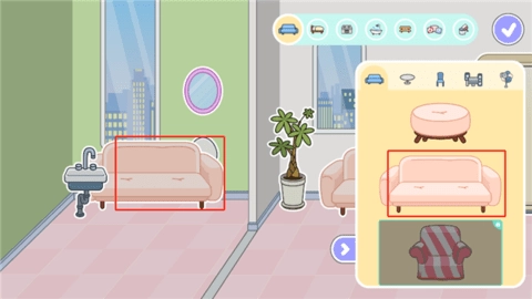 3、内部为用户提供非常丰富的家居,如沙发、桌子、水槽、床、浴缸等,玩家可以选择自己想要的家居。