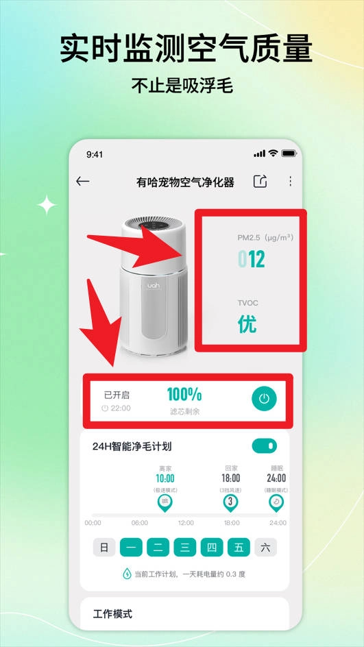 4、空气净化器支持实时监测空气质量,数值清晰可见,操作也十分便捷。
