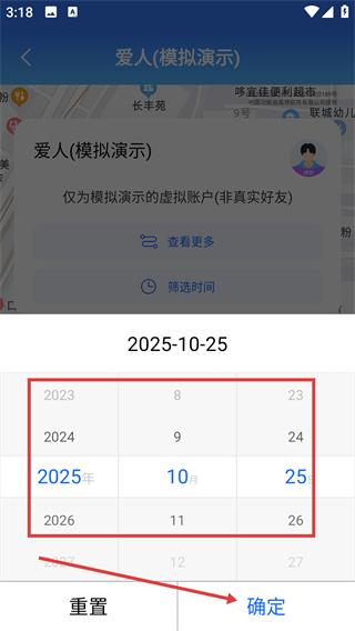 3、在时间筛选弹窗中选择目标日期(如2025-10-25),点击【确定】完成时间筛选设置。