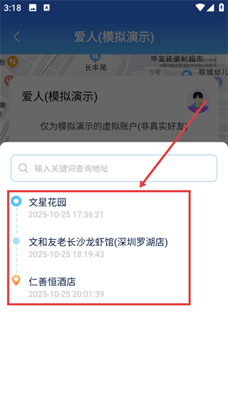 4、筛选完成后,页面会展示对应时间内的位置记录列表,可查看具体地址及时间信息。