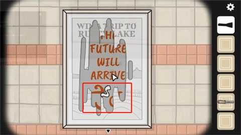 6、在婴儿车附近场景中,有一张海报。用铲子刮开海报,会出现“THE FUTURE WILL ARRIVE”(未来即将到来)的字样,海报底部还会出现一个神秘符号。