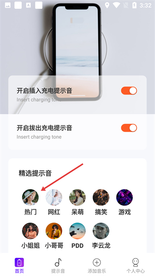 2、支持自定义充电提示音,用户可以将自己喜欢的音乐或声音设置为充电提示音,打造个性化充电体验。