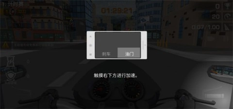 比赛开始前,得先买一辆新摩托车。选好之后,玩家可以挑选模式和关卡,进入游戏后能从三个技能里选一个。要注意,右下角的按键能加速,左下角的是刹车,方向可以通过手机左右倾斜来控制。当速度超过100的时候,超过其他车辆就能得到额外的时间和分数。比赛结束后,系统会根据成绩发奖励,如果没达到标准就得重新挑战。