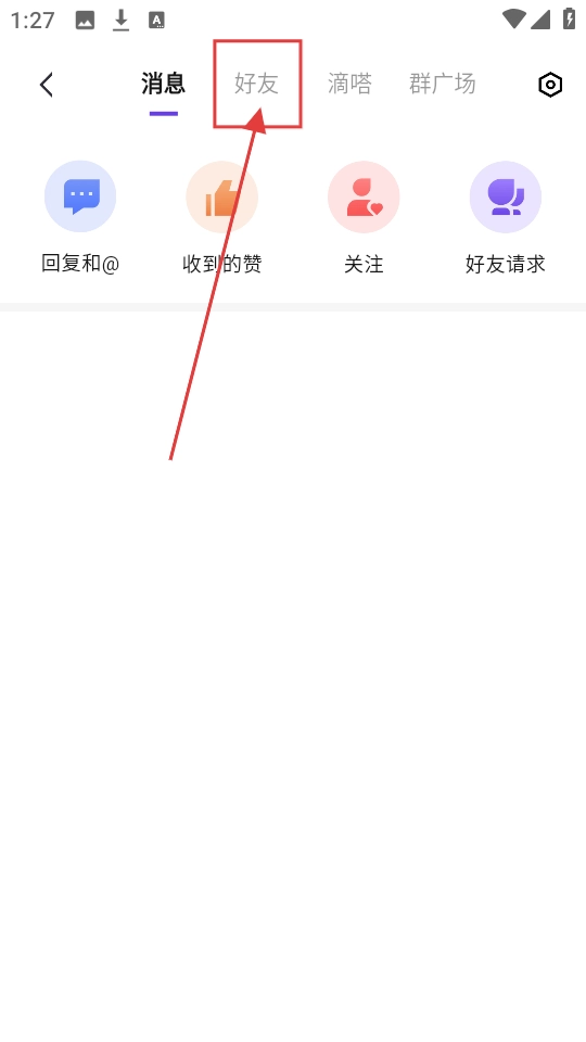 2、进入消息页面,看到【好友】选项,点击它,就能进入好友相关页面,看看好友情况。