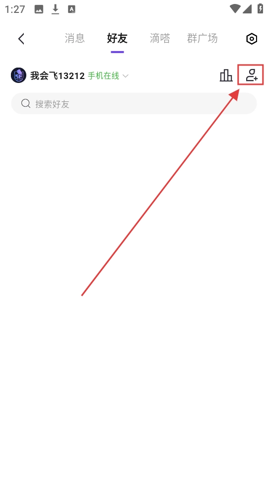 3、进入好友页面,看到添加好友图标,点击它,就能进入添加好友的搜索页面啦。