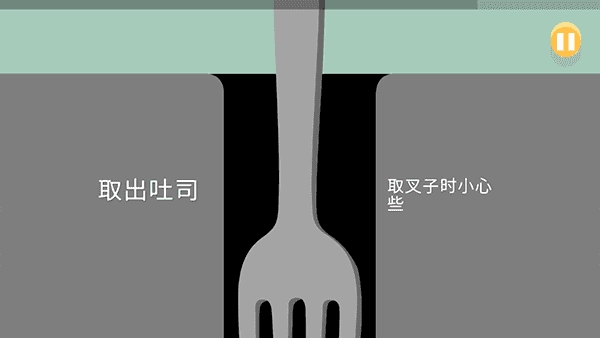 玩法:玩家需要移动叉子,并保证叉子不能动刀两边的金属。