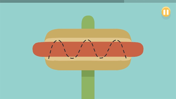 玩法:玩家看见中间红色的香肠上的虚线,玩家需要用沙拉把虚线遮住。