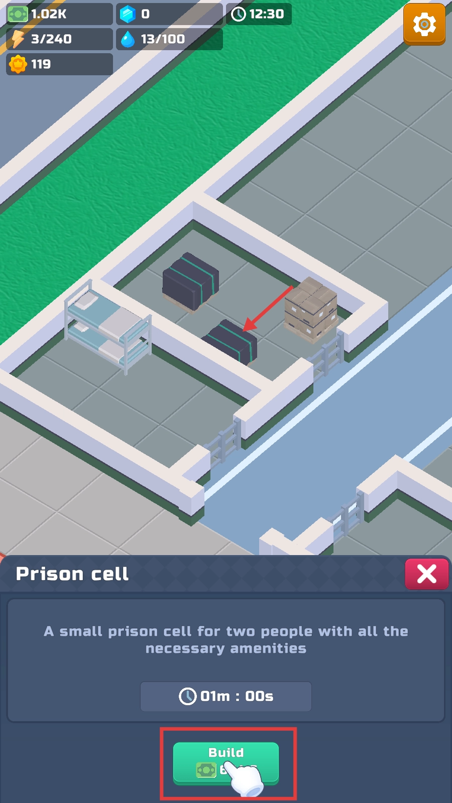 1、进入游戏,我们跟随指引点击空地规划区域,开启监狱建造之旅,为容纳囚犯奠定基础。