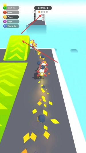 4、借助绿色坡道,让火箭加速,朝着终点线冲刺,争取率先到达终点,赢得比赛。