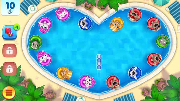 要先了解这个游戏的主要目的是将五颜六色的泳圈按照颜色分类进行消除,清空泳池,这样你才能取得游戏的胜利