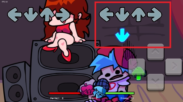 3、两个进度条pk,我们需要帮助男主角获胜,关注右边图示位置,按照屏幕上的箭头以正确的方向点击按钮,重合后按下相对应的键
