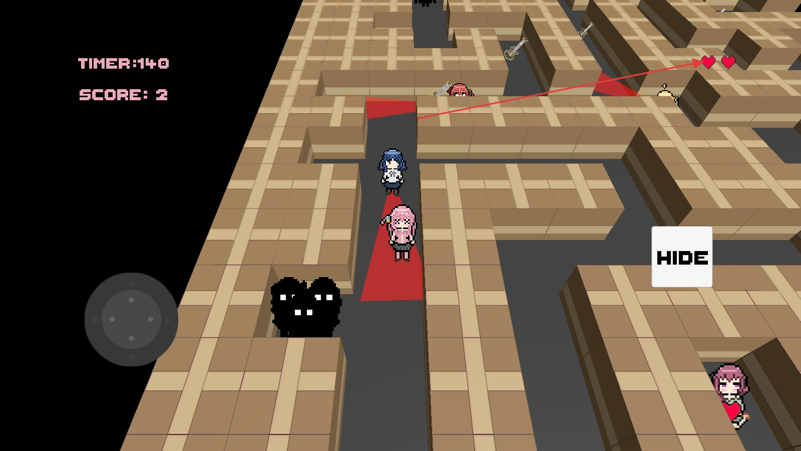 《波奇的逃离》是玩家自制的同人小游戏,采用小巧简单的2.5D躲藏玩法,画面是简约像素风格,角色Q萌可爱。玩家需要在迷宫中不断躲藏,避免被波奇的朋友们发现。游戏操作简单易上手,左摇杆控制角色移动,右键可暂时隐藏,吃掉沿途的吉他后进入绿色出口就能开启下一关。快来开启这场躲藏冒险吧!