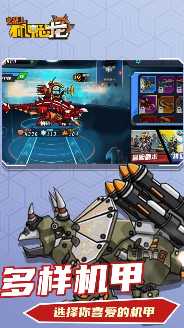 3、选择自己喜欢的机甲恐龙进行游戏,不同机甲恐龙拥有不同的技能和属性。