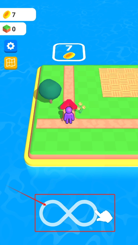 1、点击无限符号即可开始游戏,当金币攒够7个时就能升级小屋,目前金币数量还未达标。